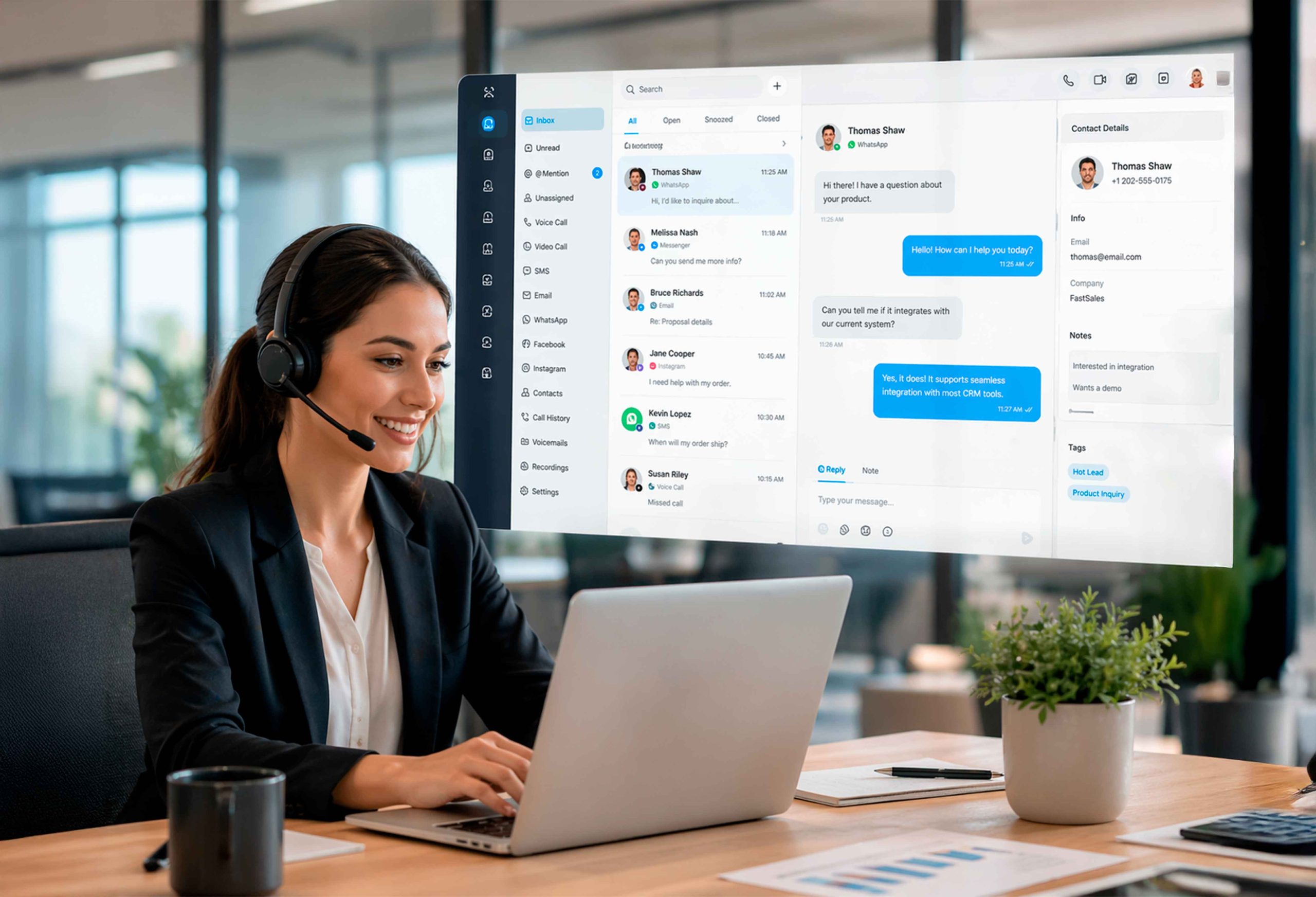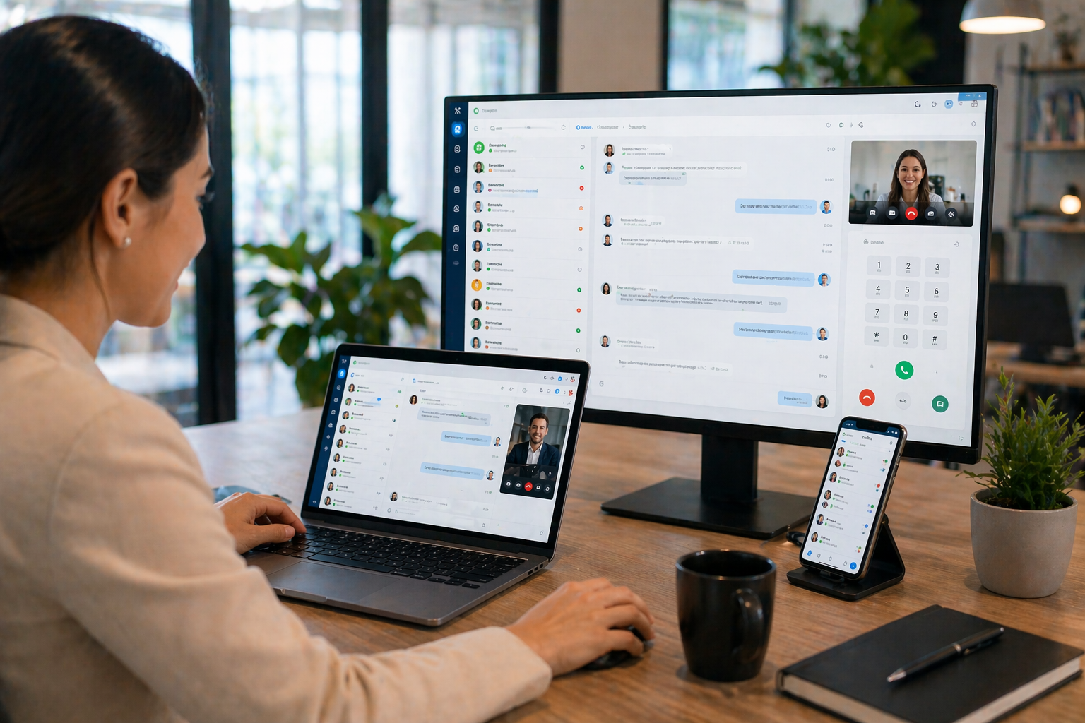 Hoy las empresas necesitan estar disponibles en diferentes canales. Con Yeastar puedes centralizar todas tus comunicaciones en una sola plataforma: llamadas, videollamadas, chats y canales como WhatsApp, SMS o Facebook. Esto permite mejorar la atención al cliente, responder más rápido y mantener todas las conversaciones organizadas en un solo lugar. Además, puedes acceder desde cualquier dispositivo y trabajar desde donde estés, con una solución flexible que se adapta al crecimiento de tu empresa.