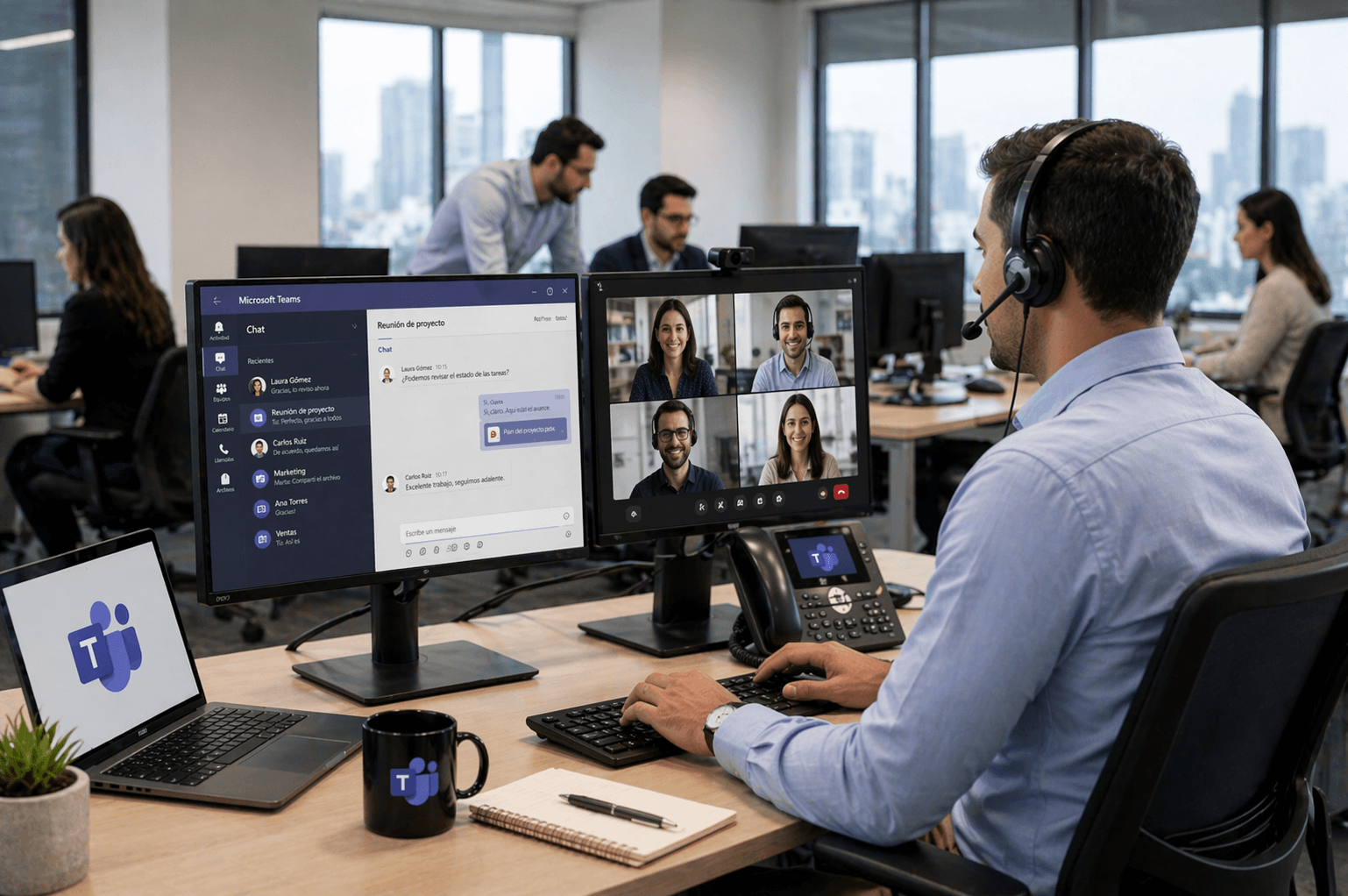 Hoy las empresas necesitan comunicarse de forma rápida, segura y sin complicaciones. Con Microsoft Teams Phone puedes transformar la manera en que tu empresa gestiona llamadas, reuniones y colaboración, todo desde una sola plataforma. Olvídate de las centrales telefónicas tradicionales. Con esta solución, puedes realizar y recibir llamadas desde cualquier dispositivo, integrar a todo tu equipo en un mismo entorno y mantener tu operación conectada en todo momento.